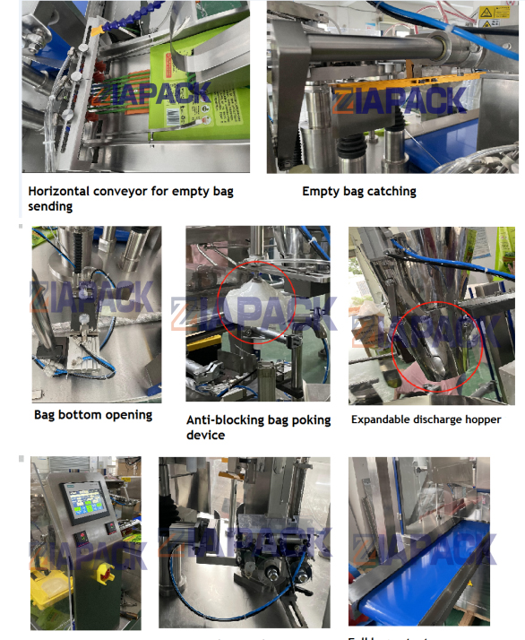 রোটারি ব্যাগ দেওয়া দেওয়া প্যাকিং মেশিন বিভিন্ন ডোজিং (যেমন মাল্টিহেড ওয়েইগার, আউজার ফিলার, তরল ফিলার ইত্যাদি) সঙ্গে গ্র্যানুলার, গুঁড়া, তরল, পেস্ট ইত্যাদি স্বয়ংক্রিয় প্যাকিংয়ের জন্য উপযুক্ত হতে পারে। প্রিমেড স্ট্যান্ড-আপ জipper পাউচ এবং আরও অনেক কিছু সহ বিভিন্ন ধরণের পণ্য।