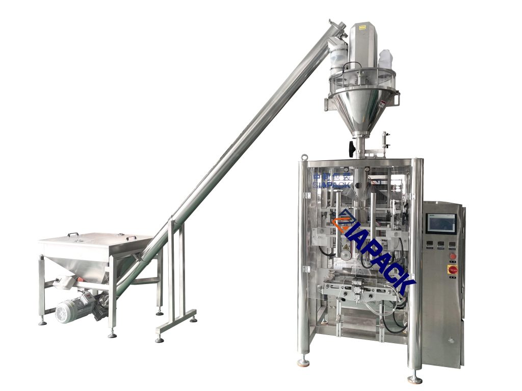 This machine unit is including one set ZL520 vertical bag forming filling sealing machine and one set ZL2000 auger measuring machine .The whole machine unit can reach automatic bag making ,Product weighing ,product filling sealing and date coding .Widely use for packing wheat flour ,coffee powder and other powder product .