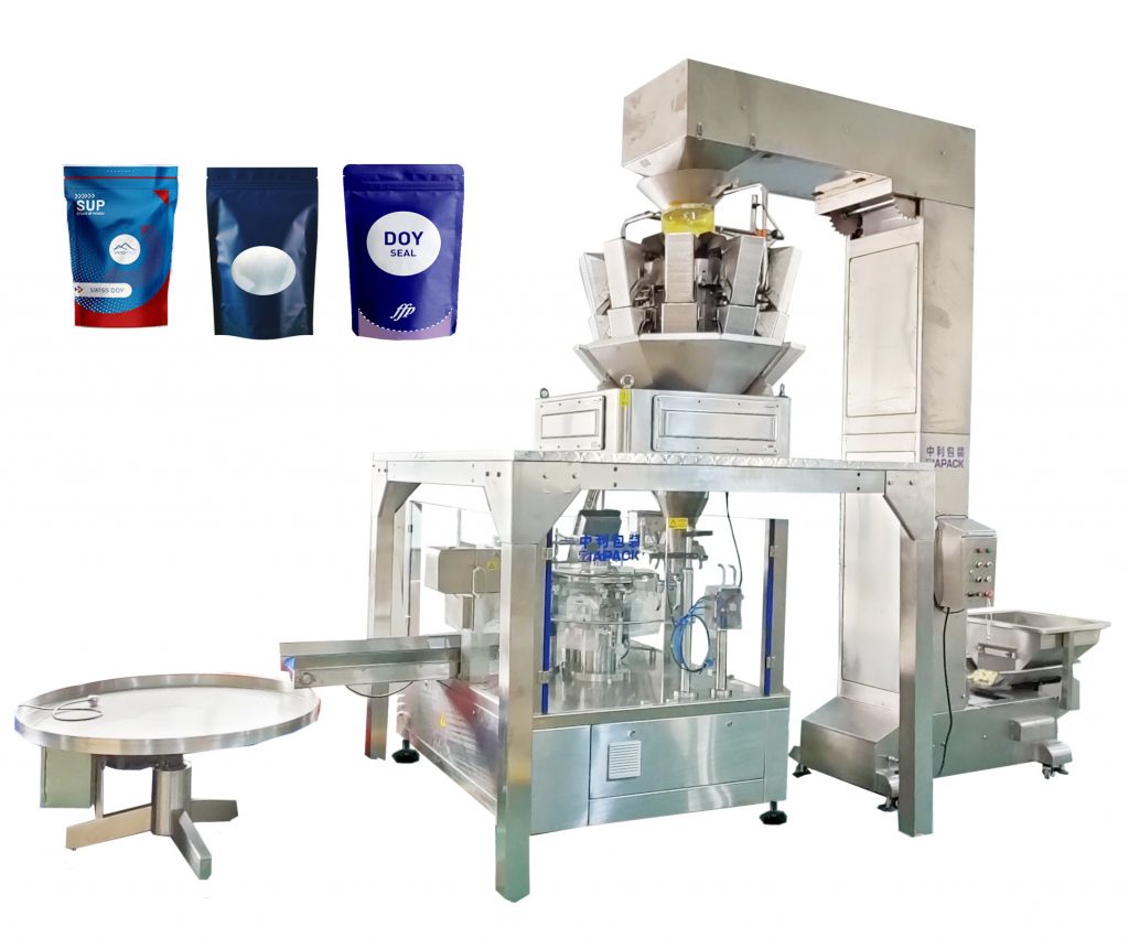 দক্ষতা ও স্থায়িত্বের 8 টি কাজ স্টেশন গঠিত প্রাক-তৈরি পাউন্ড ফীল এবং সীল মেশিন, স্ট্যান্ড-আপ ব্যাগ, জipper ব্যাগ, স্পাউট ব্যাগ এবং বিভিন্ন প্রাক-তৈরি পাউচগুলির প্যাকেজকে জোর দেয়। বিভিন্ন ডোজিং সিস্টেমের সাথে সমন্বয় করা (সমন্বয় পরিমাপকারী / রৈখিক ওয়েআইগার / আউজার স্ক্রু / পিস্টন ফিলার) এবং স্বয়ংক্রিয় উত্তোলন কনভেয়ারগুলি, এটি ব্যাপকভাবে গ্রানুলুল, তরল এবং গুঁড়াতে প্রয়োগ করা হয়।