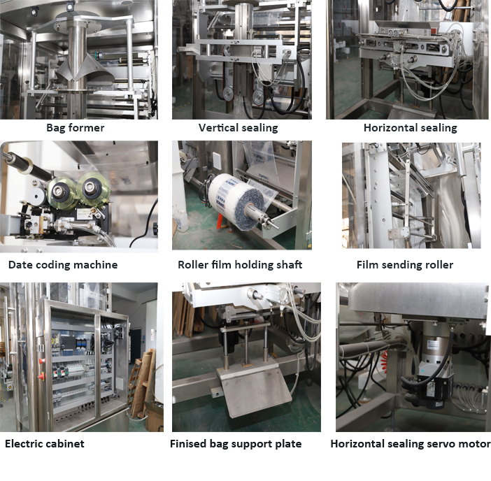 এই মেশিন ইউনিটে রয়েছে এক সেট ZL720 উল্লম্ব ব্যাগ গঠনের সিলিং মেশিন এবং এক সেট ZLC-5000 চার বালতি ওজনের মেশিন, এক সেট DT3 উল্লম্ব লিফট এবং আউটপুট কনভেয়র মেশিন। পুরো মেশিন ইউনিটটি স্বয়ংক্রিয় ব্যাগ তৈরি, পণ্য ওজন, পণ্য ভর্তিতে পৌঁছাতে পারে। সিলিং এবং তারিখ কোডিং। ব্যাপকভাবে প্যাকিং স্ল্যাট, ডিটারজেন্ট পাউডার, চাল, শিম এবং অন্যান্য দানাদার পণ্যের জন্য ব্যবহার করা হয়।